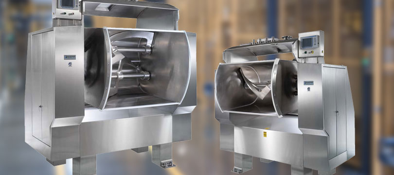 High Speed, multi-purpose batch mixers featuring heavy-duty construction and components, essential for the mixing of heavier pet food dough.